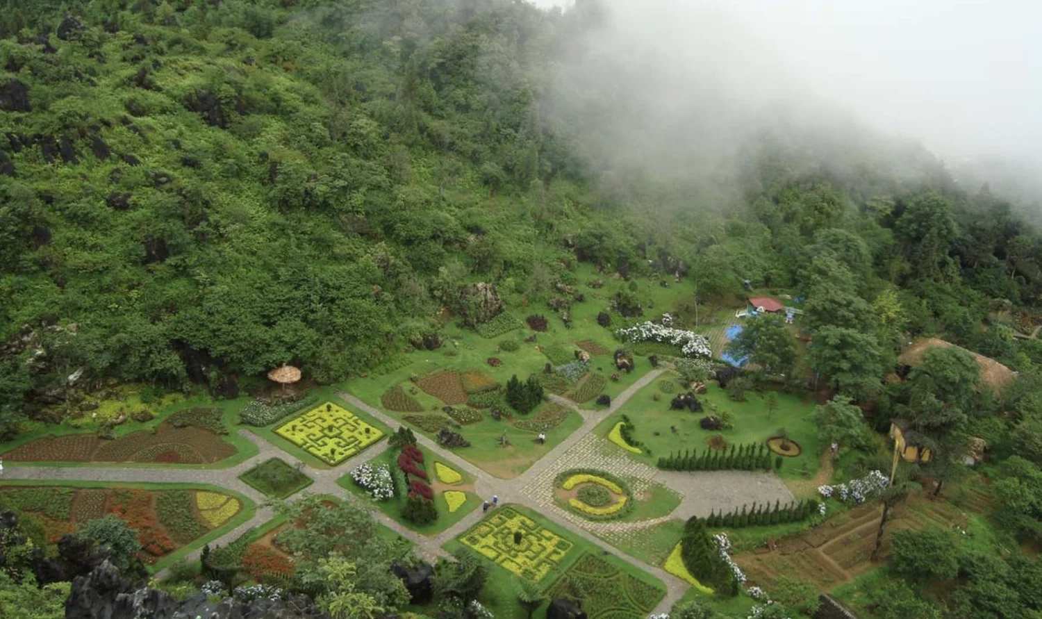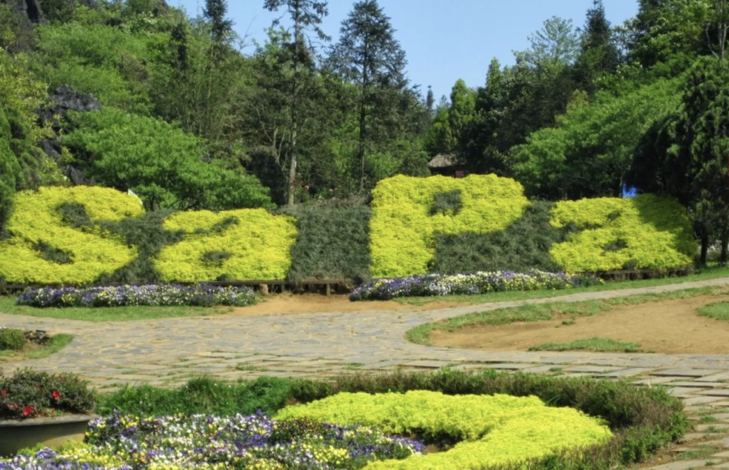 The central flower garden at Ham Rong Mountain is the area with floral artworks skillfully arranged by talented artisans into the beautiful and refined word "Sapa" in a very European and exotic Western style. You can climb higher stone steps to get an overview of the breathtakingly colorful flower garden.