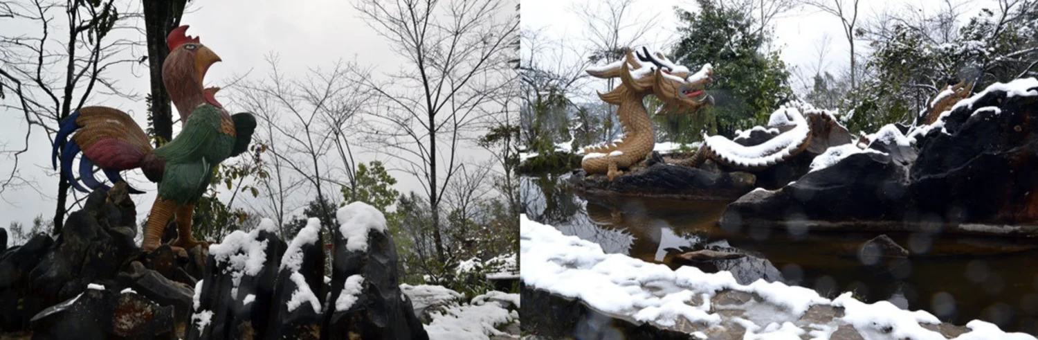 The 12 Zodiac Animal Garden is planted with interspersed pennywort, silky lasiandra flowers... The garden has a solid concrete bridge crossing over a goat statue. Images of the 12 zodiac animals are arranged in different positions along both sides of the path, so you can easily and comfortably take photos and check-in here.